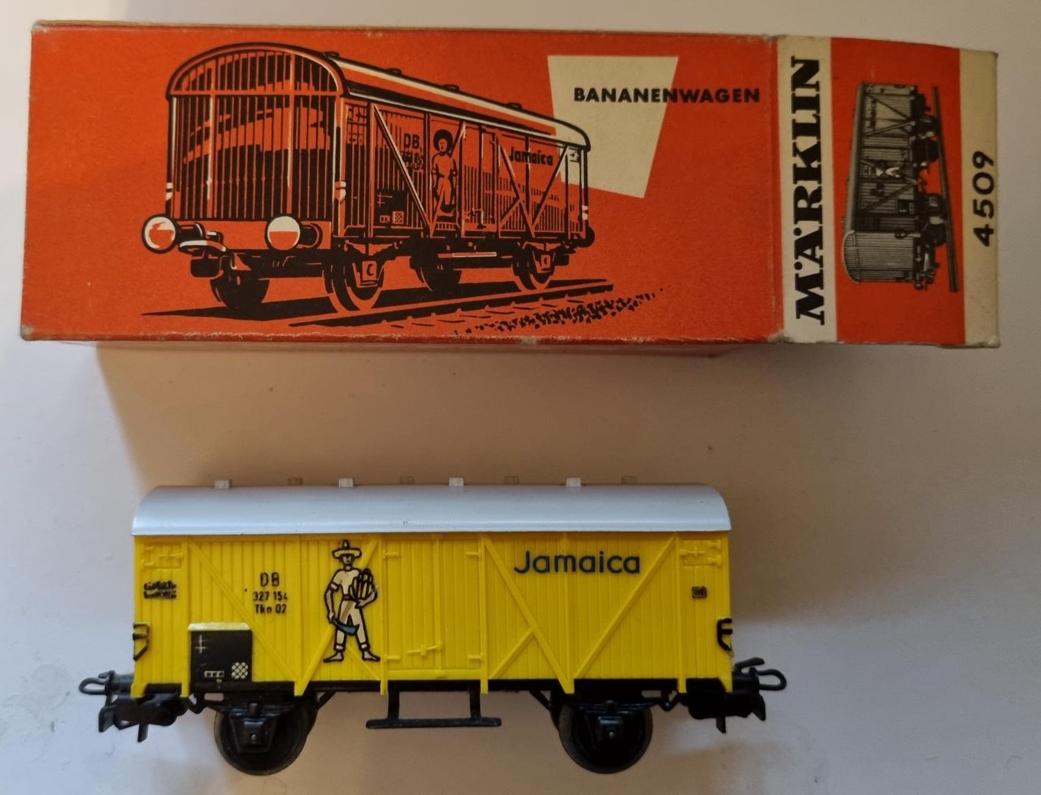 Banaanivaunu, vuodelta 1971, tummansininen laatikko.