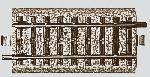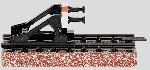 Apuväline vaunujen ja vetureiden kiskoille laittoa varten. Metallinen