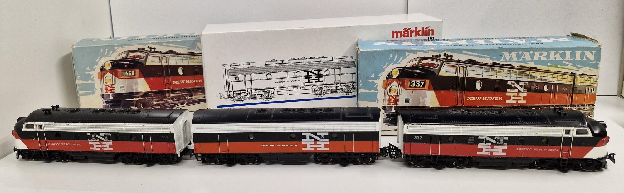 Dieselveturi F7, New Haven, moottoriosa + väliosa(uusi) + dummy, 3 x laatikko.
