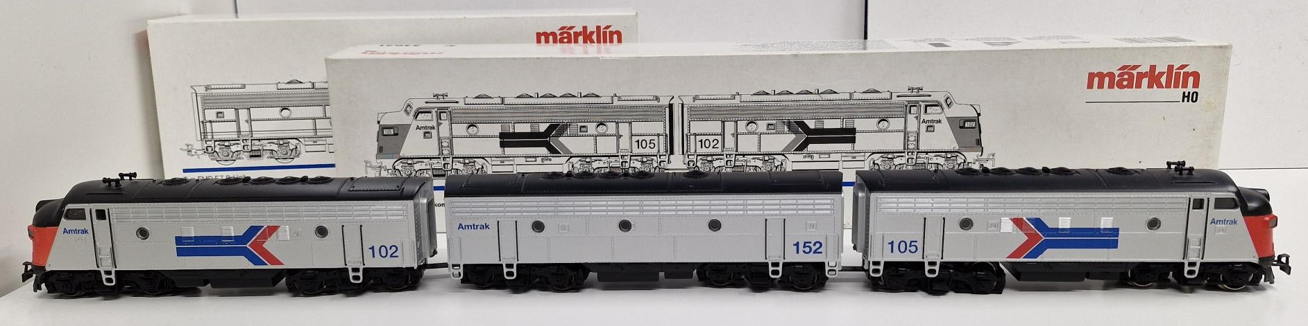Dieselveturi USA F7 AMTRAK 3 osainen, moottoriosa + väliosa (uusi) + dummyosa, 2 x laatikko.
