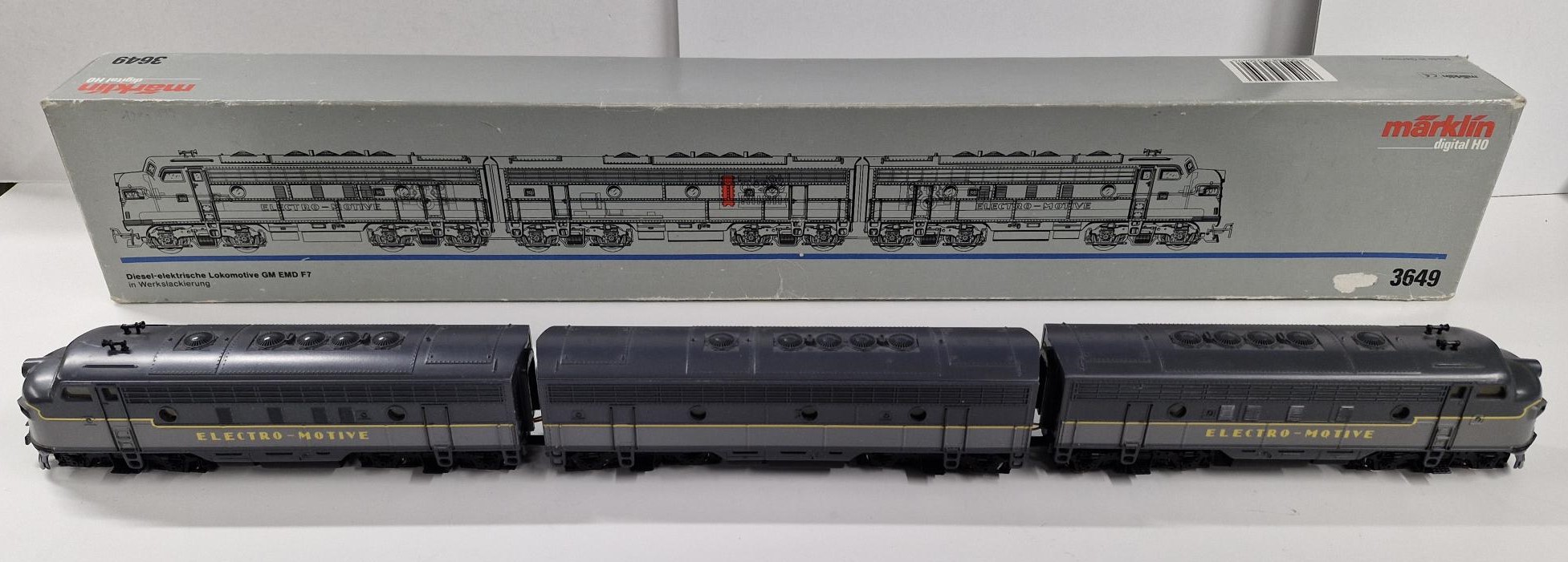 Dieselveturi USA EMD F7 3 osainen, ELEKTRO-MOTIVE, Digital, laatikko, josta sisusmuovi puuttuu.