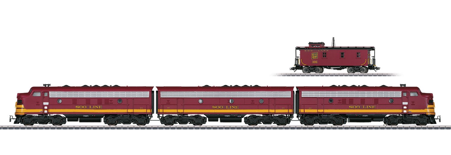 Dieselveturi USA EMD F7 3 osainen + Gaboose, SOO-Line, Digital, MFx, äänet, laatikko.