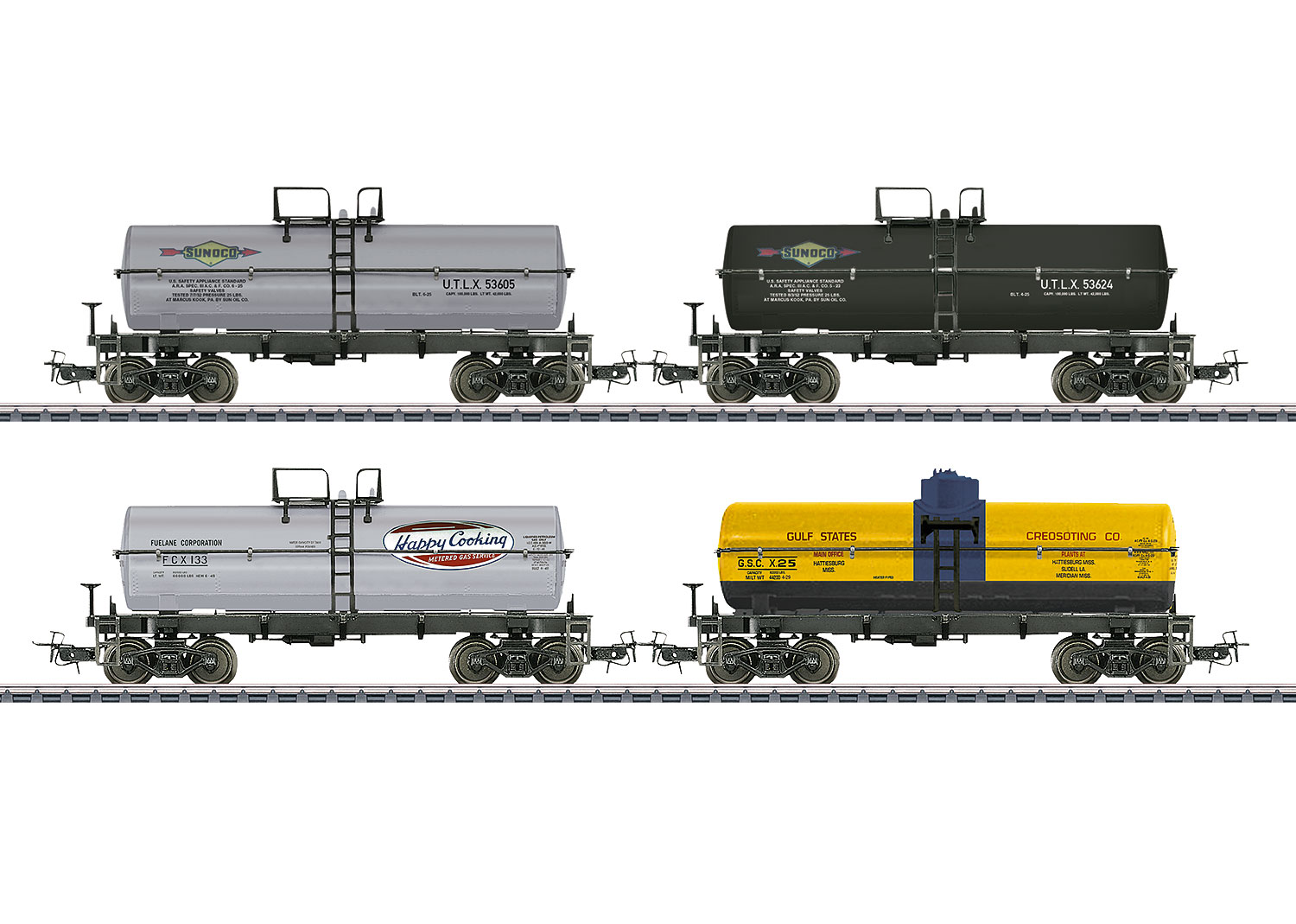 Vaunusarja USA, neljä säiliö vaunua, laatikko.